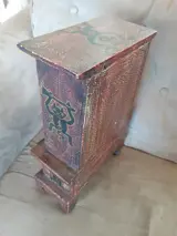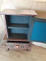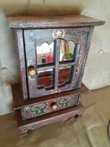 Schattig houten opbergkastje met laadje en bovenkant met 2 deurtjes met spiegeltjes. Decoratief object leuk in meisjes kamer. In goede staat.