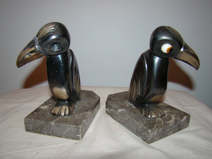 Hippolyte Moreau - Boekensteunen (2) - Art Deco - Zinklegering