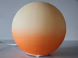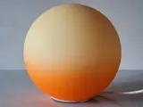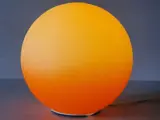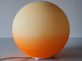 "Mars" is een zeldzame en mooie lamp in een ruimtelijk ontwerp. De lamp is in de jaren 70 schitterend ontworpen door het Duitse bedrijf Honsel Leuchten. Labelparameters: 250 V~, 1 x E 27-60 Watt, nee. 95011, 61.9.S. De diameter van de oranje glazen kap is ongeveer 19 cm. De lampenkap heeft een gradatie van oranje kleur, aan de voet is deze het donkerst. Het onderstel is gemaakt van massief, geëmailleerd plaatstaal. Kabellengte ongeveer 180 cm. Zeer goede gebruikte staat. Ik heb ook wat foto's gemaakt van de lamp in twee verschillende kamers.