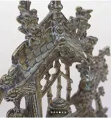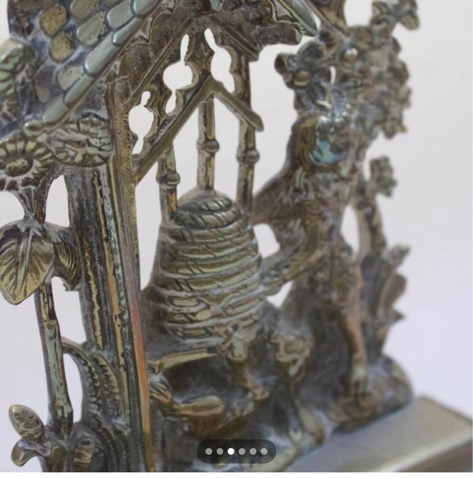Het is een mooi stuk antieke koperen horlogehouder, je kunt er zowel kettingen als horloges aan hangen.