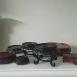 Zeven verschillende Chinese vaas voeten. Verschillende modelen, verschillende hout storten. Allemaal in goede staat.