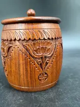 Schitterende tabakspot gemaakt van hout met jugendstil versieringen.