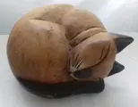 Decoratieve figuur in slapend kattenhout, origineel schilderij.
