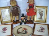 Twee ZELDZAME antieke Hummel figuren van rubber, jaren 50, 28cm hoog, helaas is het lichaam (alleen de torso) in de loop van de tijd vervormd omdat de weekmaker waarschijnlijk is verdampt!! maar geen gekraak! (Bekijk de foto's a.u.b. goed!!) Een arm van het meisje is losgekomen en zit losjes ingesloten!