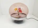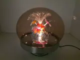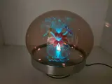 Deze geweldige Italiaanse psychedelische tafellamp is gemaakt van Aluminium, Kunststof, Acrylglas. Binnenin de lamp draait een motor de interne voet en tegelijkertijd veranderen de kleuren van de glasvezelbloemen (5 verschillende kleuren) en roteren tegelijkertijd.