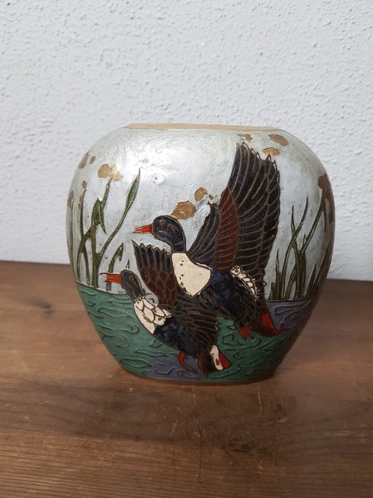 Let op Door de leeftijd van de vaasjes is de emailleverf er op diverse punten vanaf en zeer bros