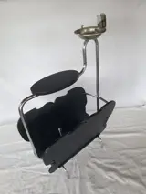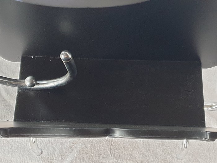 Klassieke krantenstandaard met asbak, verchroomd buizenframe met hout.