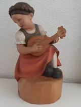 Het Luitspeelstertje is gesneden uit hout van de heerlijk geurende Alpenden (Zirben) en handgeschilderd (ca. 1990).