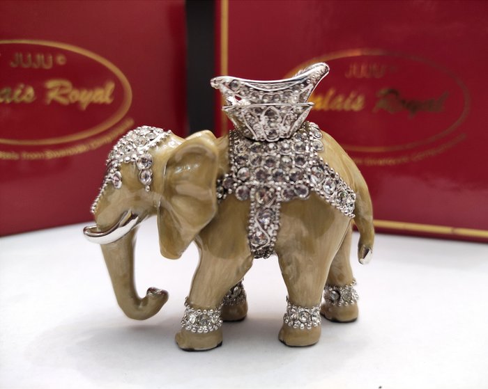 Juju Palais Royal - Beeldje - Indische olifant met doos (1) - Swarovski kristal