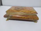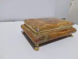 Ik bied aan dit prachtige onyx juwelendoosje van Italiaanse makelij uit de jaren 1900 met een goudkleurig scharnierdeksel en goudkleurige leeuwvormige pootjes.met tracking..