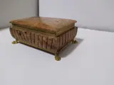 Ik bied ter veiling aan deze grote onyx juwelendoos van Italiaanse makelij met goudkleurig scharnierdeksel en goudkleurige leeuwvormige pootjes.De conditie is goed maar er zijn natuurlijk wel wat ouderdomssporen maar die doen niets af aan de schoonheid. Ik garandeer adequate verpakking en verzending met tracking.