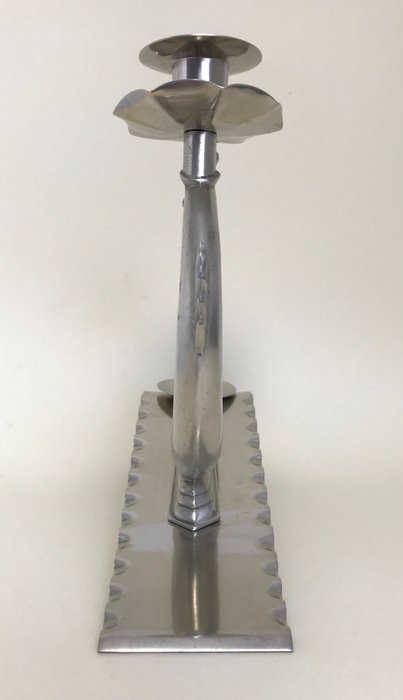 Amsterdamse school. Geschulpt en gekrulde metalen onderzijde.