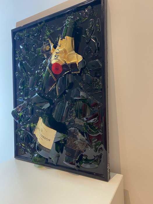 Moët&chandon frame met de hand gemaakt, zwarte epoxyhars samenstelling en tot slot moët&chandon 70cl fles