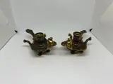 Een bijzondere kandelaar of blaker waarbij de onderste schaal prachtig gestileerd is in de vorm van een vogel.