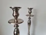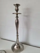 Twee grote zilverkleurige kandelaars ban maar liefst 45 cm hoog. Staan stevig.