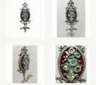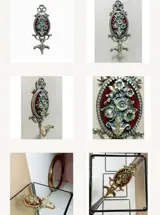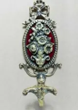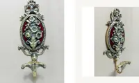 Wandkapstok met haak van metaal in reliëf op textiel en boogvormig blad.