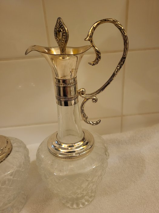 Prachtige kristallen karaf duo. Verzilverde outfit. Midden 20e eeuw Met kurksluitingen, Italië Vervaardigd voor de Ditelleria Buton in Bologna.