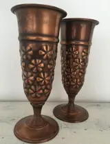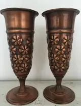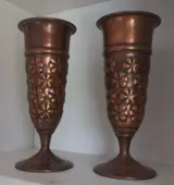 2 oude mooie decoratieve koperen kelken afkomstig uit het Midden-Oosten. Met bloemrelief motief.
