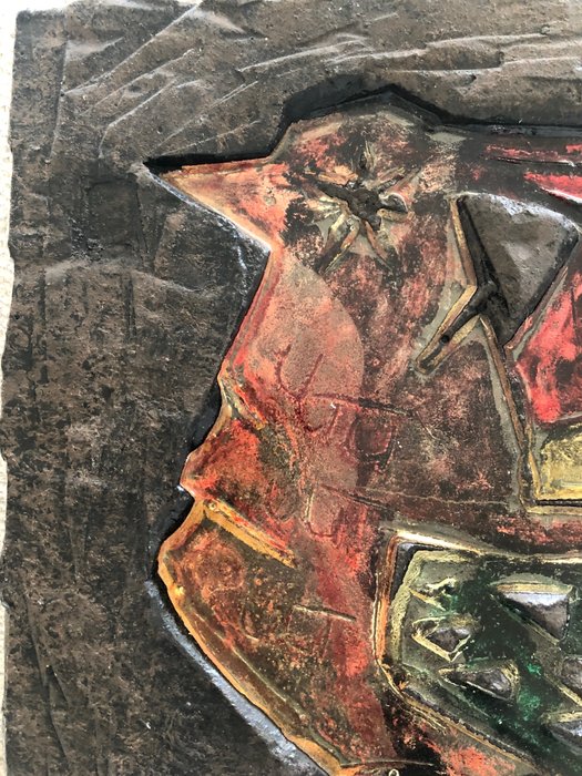 Veelkleurig geglazuurd. Vrij zware studio gemaakt. Artwork.