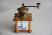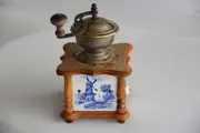 Zeer goede staat, zoals weergegeven op de foto's. De tegel op de stortkoker is gespleten, er zit een kleine beschadiging op een houten hoek (foto) De aanblik van de molen, de Delftse tegels met het hout en het koper is een genot. biedermeier?