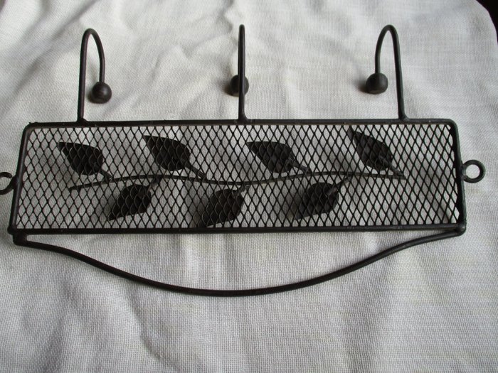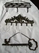 3) koperen muursleutelhanger, 22,5 x 7 x 3 cm, 160 gr.. De ketting is slecht gerepareerd, zoals op de foto te zien is.