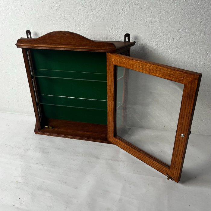 Art Deco - Kleine hout met glas hangvitrine of zilverkastje