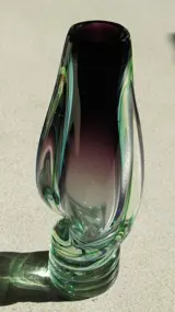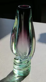 Het is een dikwandige glazen vaas van 24 cm. hoog