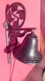 De bel heeft een steun van 22 x 12 cm en een bel van 10 x 10 cm.