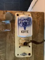 Molen 2, witte keramische wandkoffiemolen met een zwarte print Kaffee. De molen 27 cm lang, 13 cm breed, gewicht 1600 gram.