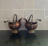 Erg nette koperen waterpot en 2 koperen helmpotten.