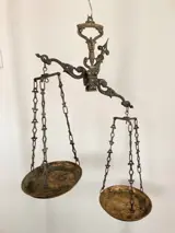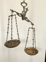 Fraai gedecoreerde weegschaal , die vaak is gebruikt , waardoor er een mooie patina is ontstaan.