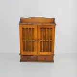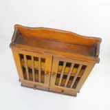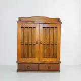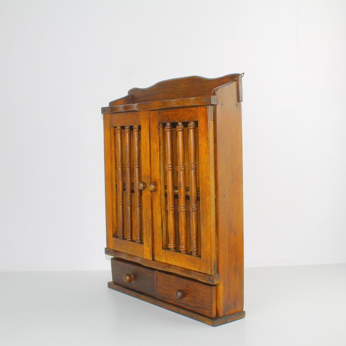 Landelijk kruidenkastje met opengewerkte deurtjes. Het kastje heeft twee laden en in het midden één plank