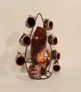 De set heeft een decoratieve uitstraling dankzij de standaard waar de kruik in geplaatst kan worden en waar de kopjes aan opgehangen kunnen worden.