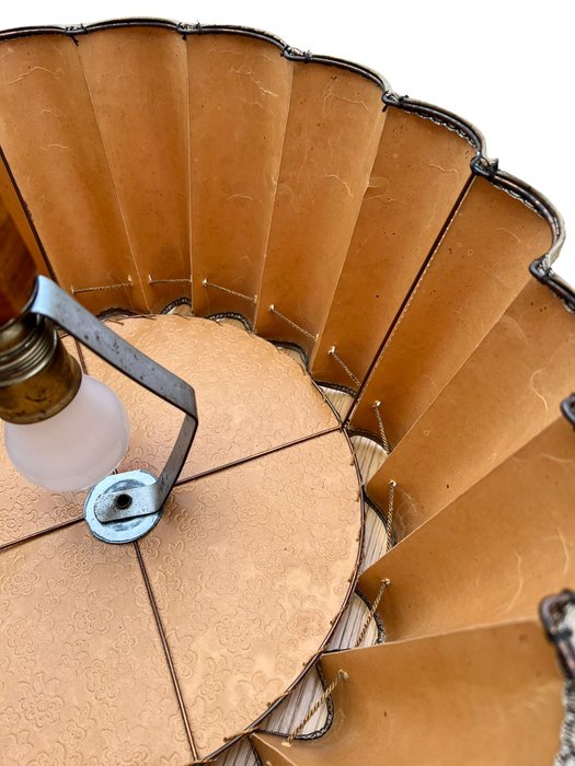 Tafellamp uit de jaren 20, kap is van perkamentpapier.