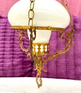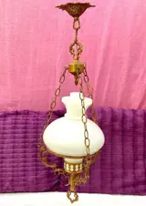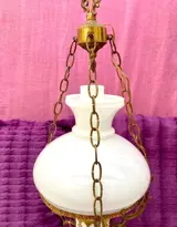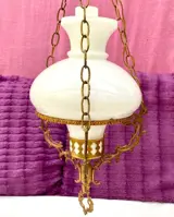 Antieke lamp van brons en opaline glas van het type quinqué, jaren 60, 67,5 cm lang en 24,5 cm in diameter, in zeer goede staat, zeer moeilijk te vinden, geleverd zoals op de foto's.