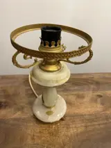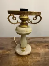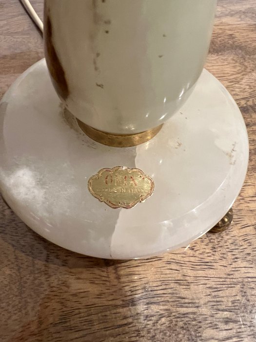 Oude tafellamp uit het begin van de tweede helft van de 20e eeuw, gemaakt van messing en onyx, met het originele merk ONIX Made in Italy.