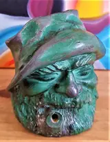 Prachtige kleine buste "de man met de pijp" met een groenige patina gesigneerd Le Verrier. Dit beeld begint steeds zeldzamer te worden.
