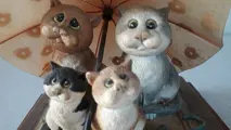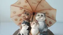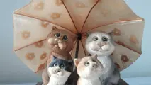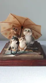 Deze katten zijn gemaakt van keramiek,en de paraplu van kunsthars