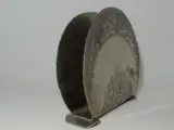 Een prachtig gedetailleerde servethouder met een handgehamerd ontwerp.