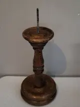 groep oude houten kandelaars in diverse uitvoeringen