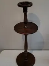 B. donker houten kandelaar met met daaronder 2 etages voor andere decoratie. 63 x 21 cm.