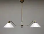 De lamp heeft twee grote fittingen (e27) en kan worden voorzien van LED lampen of gloeilampen. Werkt perfect.