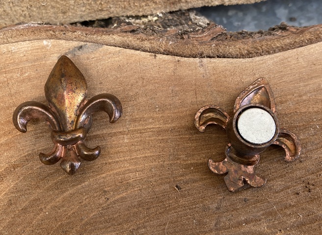 MAGNETEN IN DE VORM VAN EEN FRANSE LELIE ANTIEK LOOK KOPER