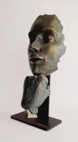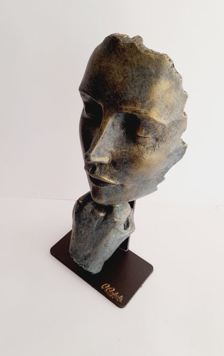 Brons op hars op metalen voet (koud gegoten brons). Het origineel is door de kunstenaar in klei gebeeldhouwd. Een echt bronzen oppervlak wordt verkregen op een composiet gietkern van hars en marmerpoeder.