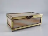 Rondom afgewerkt met koperen randen en sluitwerk/pootjes.