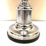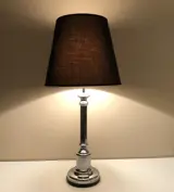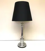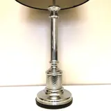 Vintage tafellamp mooie vormgeving perfect integreerbaar in de huidige strakke design stroming , zwarte linnenkap met minimale gebruikssporen , chroom is in heel goede staat.
