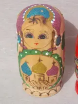 Handbeschilderde Russische houten matroesjka bestaande uit 5 elementen (poppen) perfect bewaard gebleven, kleine ouderdomssporen.