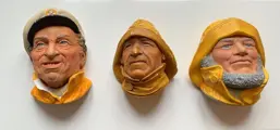 3 mooie gipsen hoofden die zeelieden voorstellen