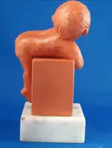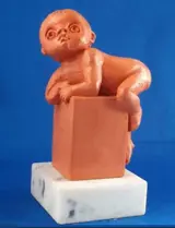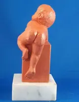 Dit beeldje is vervaardigd door May Claerhout in België in het late deel van de 20e eeuw. Terracotta. Het beeldje is gemarkeerd en gemonteerd op een marmeren voet.