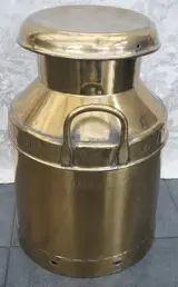 Oude melkkan , hierin werd de melk bij de boeren opgehaald , Engeland , UD(w) Trowbridge , op het deksel staat South Coast Dairies TTd . Word goed verpakt en verzonden met Dpd of postnl .